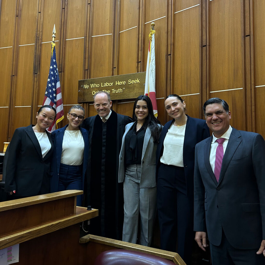 Judge Kevin Hellmann with Paola Calleyro, Sara Howard, Jenna Kaplan & Izabella Lyon